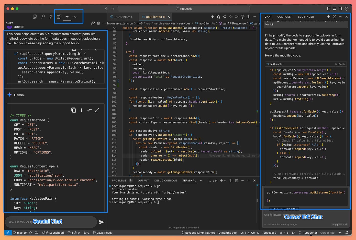 This might be a little subjective, but I like the Cursor Chat experience much better than Gemini Assist in terms of how you interact with the AI Chat while writing and understanding some code.